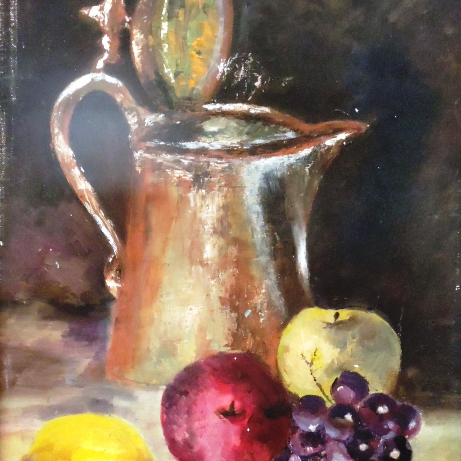 Fruits with a Pitcher Fruits and a Pitcher - Oils on Canvas, 18 x 16 Share this: Click to share on X (Opens in new window) X Click to share on Facebook (Opens in new window) Facebook More Click to share on LinkedIn (Opens in new window) LinkedIn Click to share on Pinterest (Opens in new window) Pinterest Like Loading...